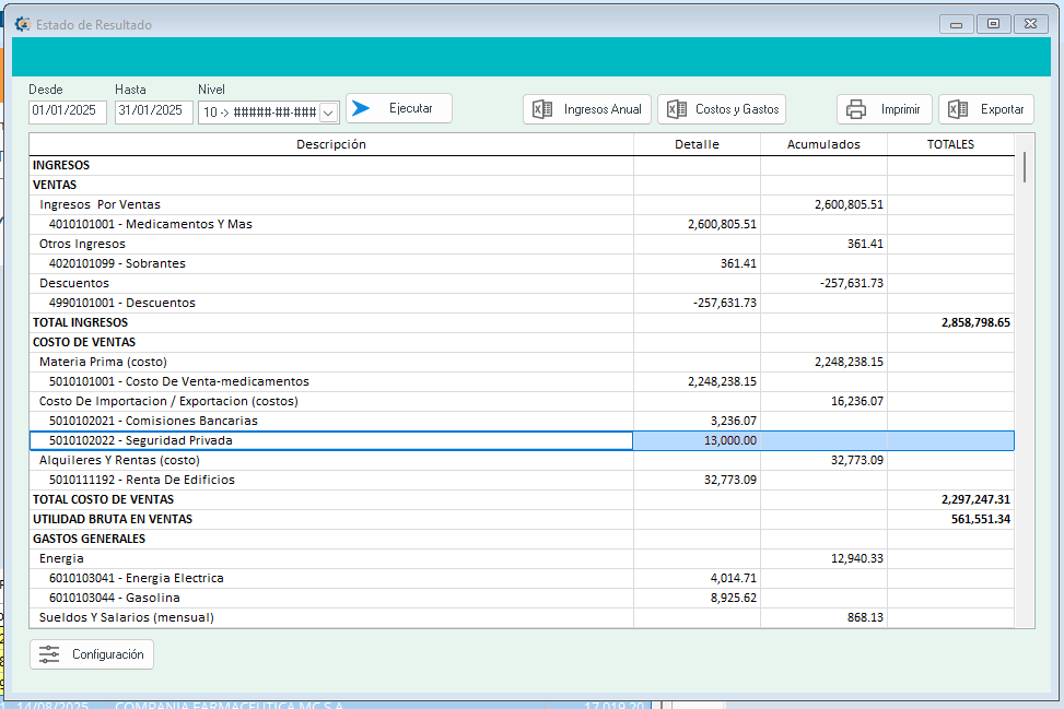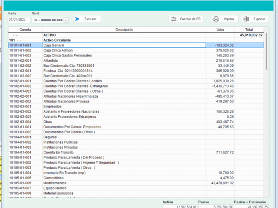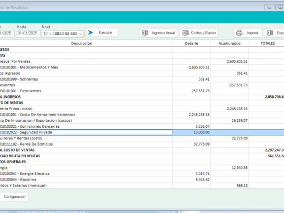 - Reportes: estados financieros, cierres mensuales, auditoría por usuario.